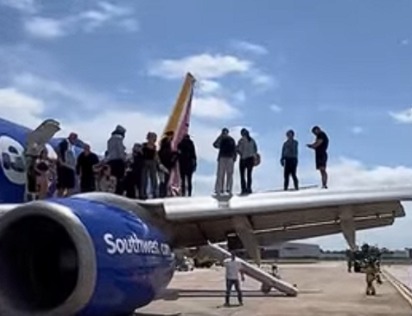 סרטונים מהאירוע (ראו בקישור השני) מראים נוסעים עומדים על הכנפיים, המדפים מטה (המטוס בכל מקרה היה אחרי נחיתה) ולא גולשים על המדפים אל המסלול. פינוי דרך הפתחים שעל הכנפיים, במטוסי 737, מחייב גלישה על המדפים. זו לא ממש חוויה נעימה. אני מניח שאם יש אש ממשית, הנוסעים יגלשו כל עוד רוחם בם, אבל אם אין משהו קיצוני, ימתינו לסולם…