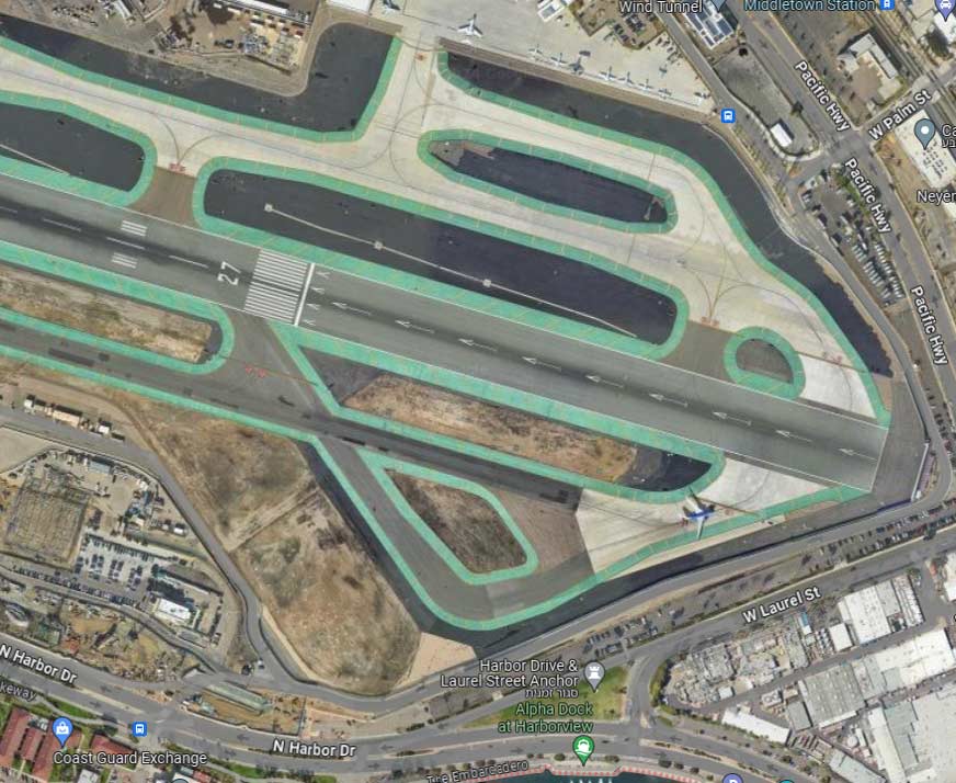 עד כאן עיקרי המסקנות. להלן תצלום של אזור תחילת מסלול 27, בסאן דייגו: